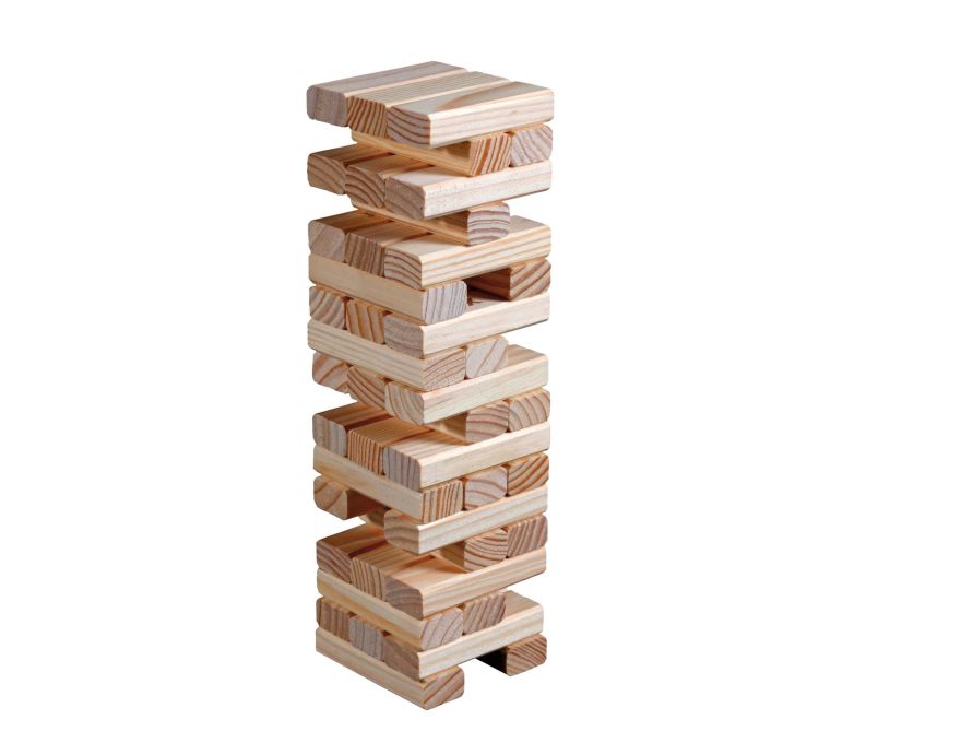1. Regular Jenga (A tower game for multiple players. Whose nerves and steady hand will be most succesful at taking blocks out of the tower without toppling it over?)