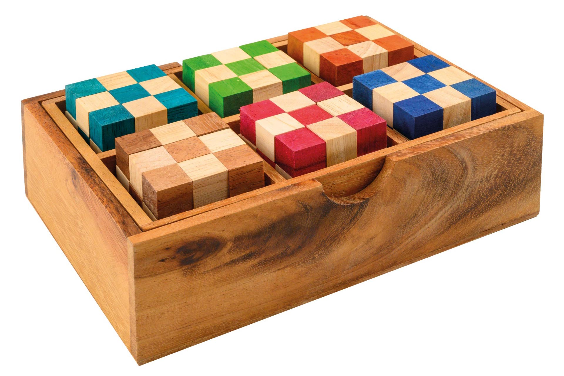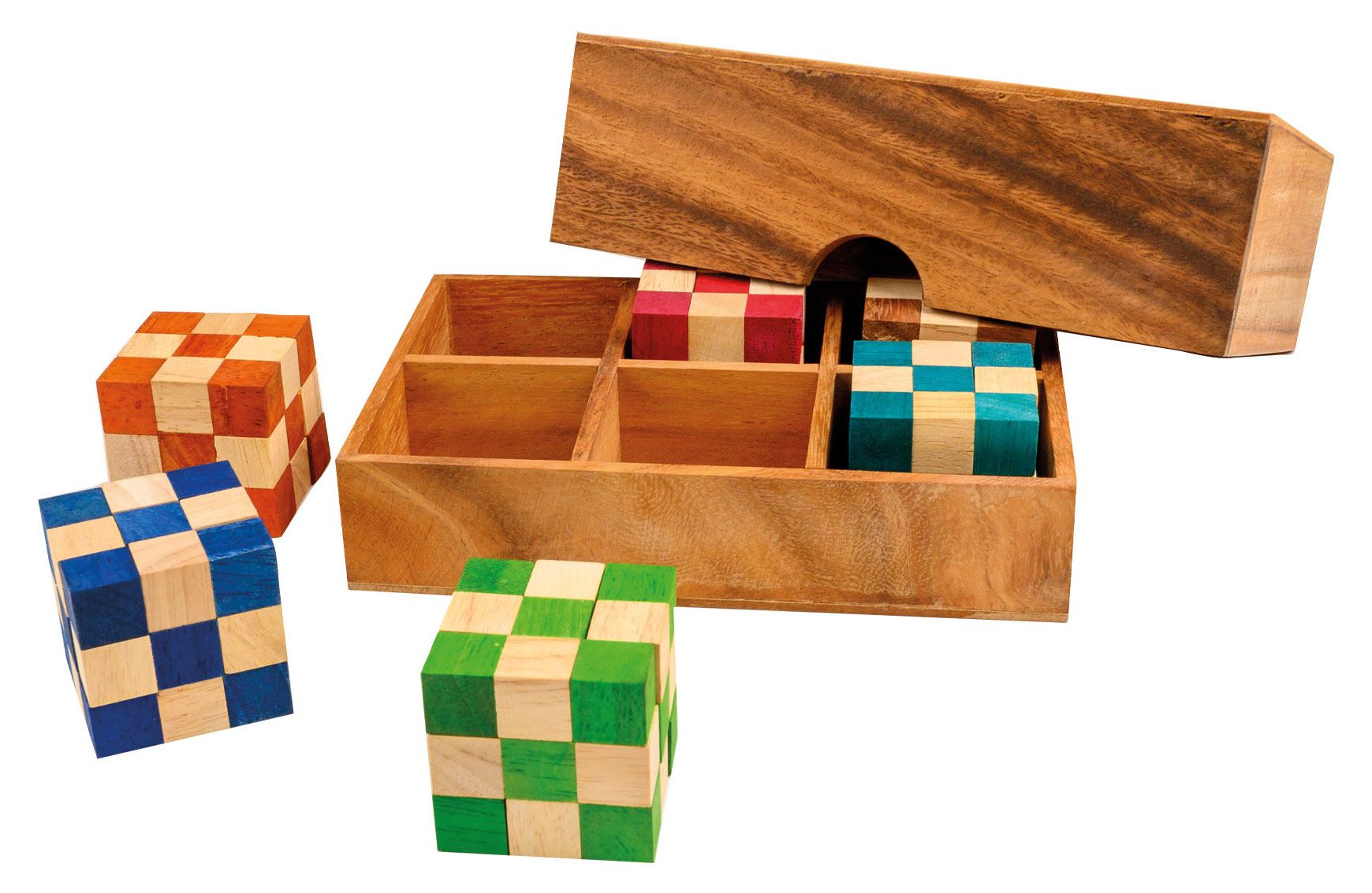 Vse kocke so povezane z vrvico. Ko je kocka enkrat razstavljena (kača), je potrebno veliko spretnosti in potrpežljivosti pri spreminjanju kače nazaj v prvotno kocko. V tem kompletu dobite 6 kock v različnih težavnostnih stopnjah.